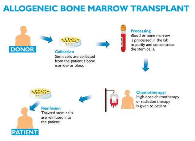 • Allogeneic BMT involves using the stem cells of a donor. It may be